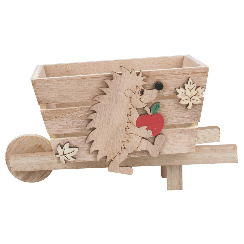 Popis k výrobku: Dřevěný trakař s ježkem 18 x 11 cm
