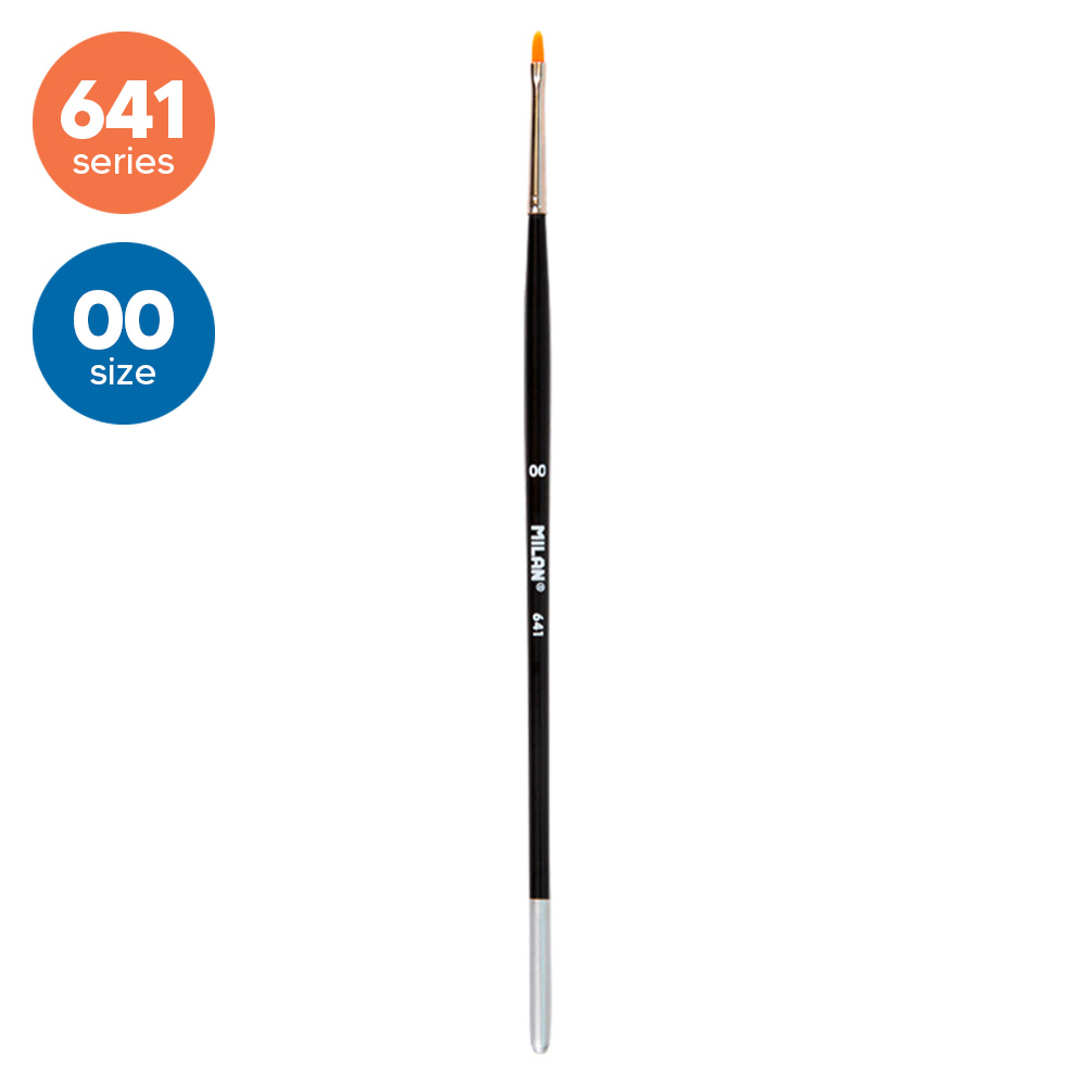 Plochý štětec č. 00 s dřevěnou rukojetí. Černá lakovaná povrchová úprava (matná) s niklovým úchopem. Složení: syntetické štětiny, průměr vlákna 0,70 mm a 0,10 mm. Vhodný na olejové a akrylové barvy. Průměr štětin: 2,7 mm. Délka štětin: 6 mm. Délka štětce: 193 mm.