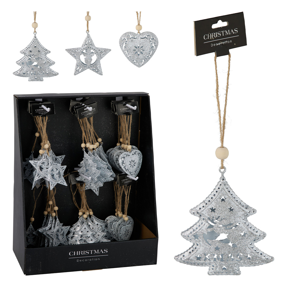 Závěsná dekorace - vánoční motivy 7,5 cm, stříbrná, mix /1ks