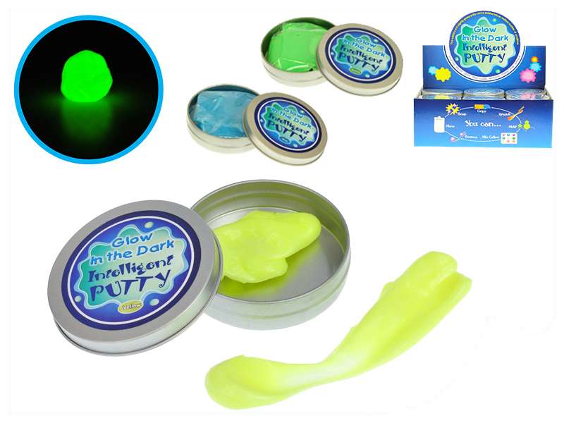 Chytrá hmota v plechovce svítící ve tmě 3barvy 24ks v DBX