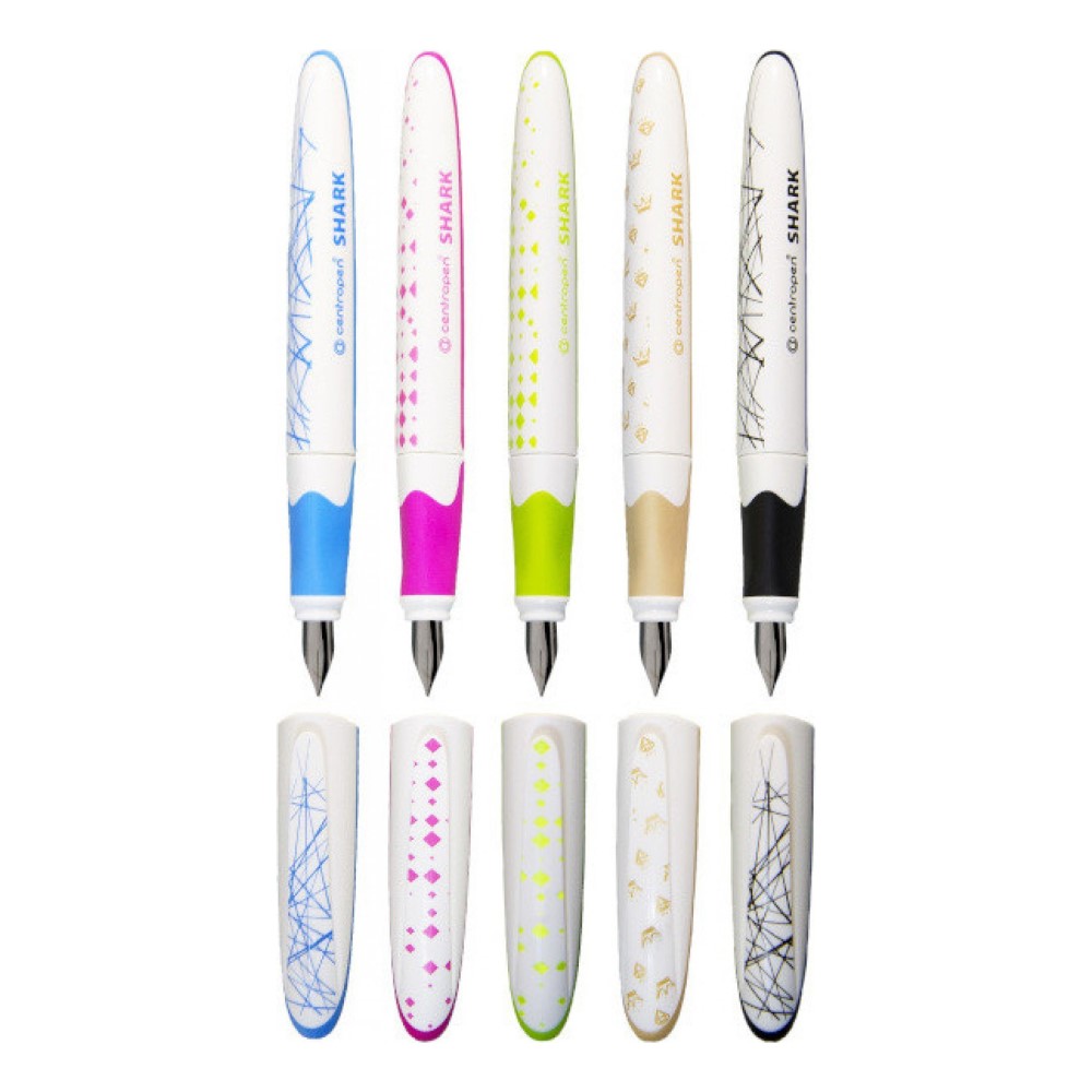 Popis k výrobku: Pero bombičkové CENTROPEN Shark Ergo 2166, blistr - mix barev a designů Designově atraktivní trojúhelníkové, ergonomické bombičkové pero s ocelovým hrotem s iridiovou kuličkou typu F (0,3 mm)