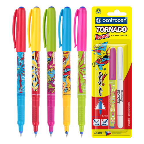 Popis k výrobku: Pero kuličkové CENTROPEN 2675/2 Tornado Boom! + zmizík, blistr