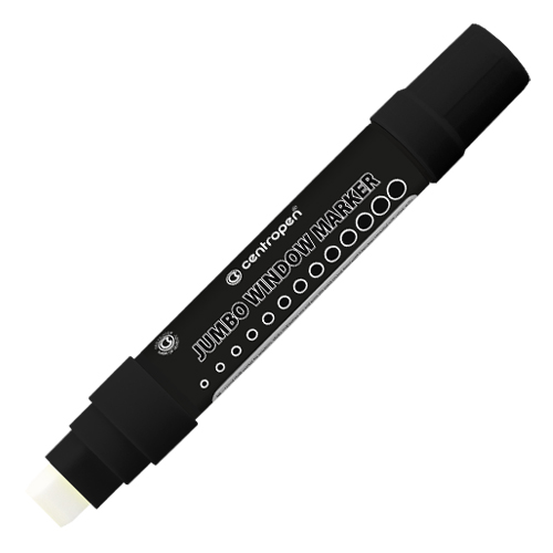 Velkoobsahové značkovač Jumbo s přepouštěcím mechanismem, vhodný na popisování oken, výloh, zrcadel a automobilových skel. Díky velké krycí schopnosti a zářivým barvám inkoustu jsou nápisy velmi dobře videteľné iz velké dálky. Značkovač je plněný tekutou křídou na vodní bázi, která rychle zasychá a dá se snadno setřít suchým nebo vlhkým hadříkem. Obdélníkový hrot může vytvořit stopu šíře 2 - 15 mm. Barva černá.