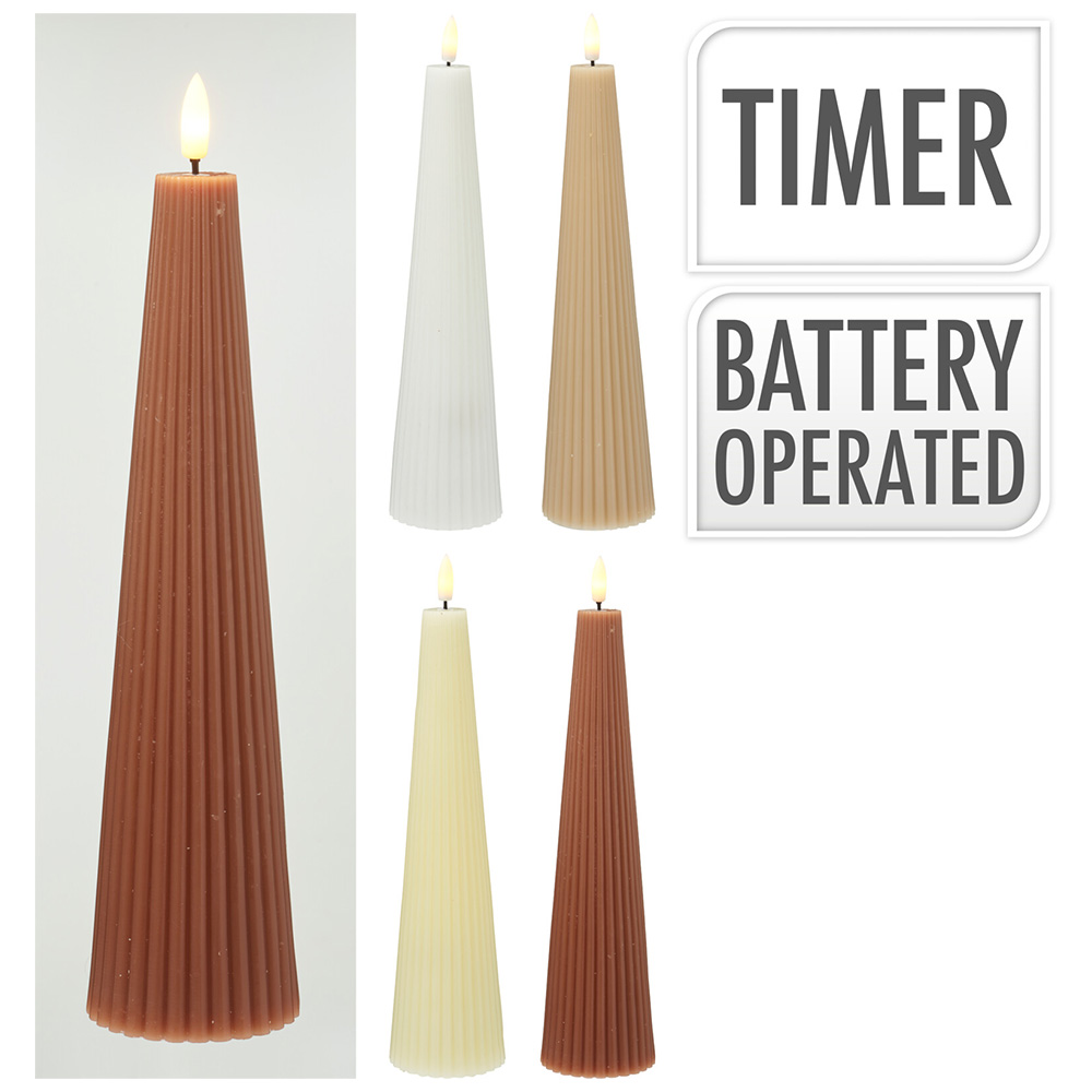 LED svíčka s časovačem 25 cm s vroubkovaným povrchem (mix 4 barev)