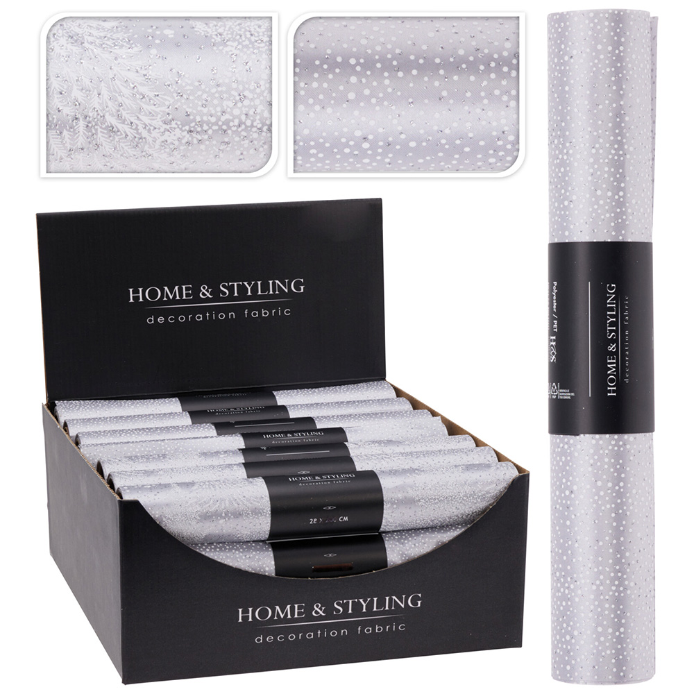 Popis k výrobku: Organza látková 28x250 cm - stromek /tečky, stříbrná barva (mix)