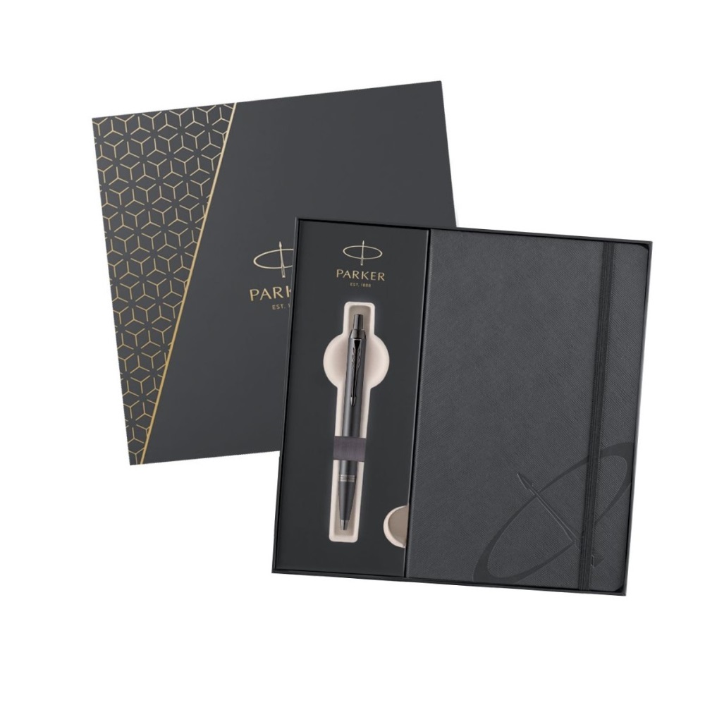 Popis k výrobku: Pero kuličkové PARKER IM Titanium Monochrome + šedý zápisník