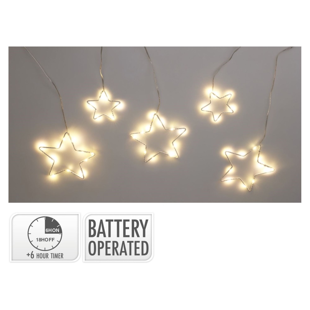 Svítící řetěz na záclonu /závěs s 45x mikro LED tvar hvězdy.