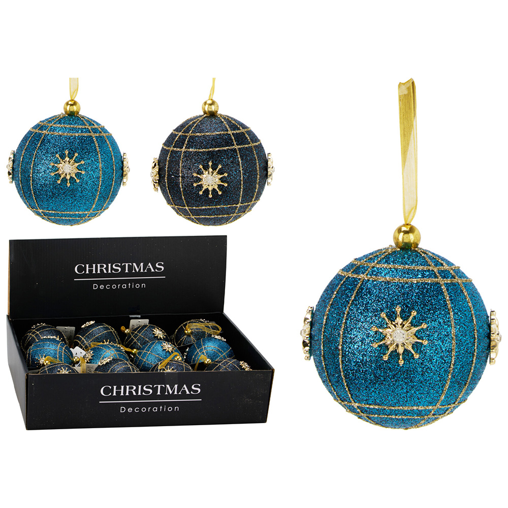 Popis k výrobku: Vánoční koule 80 mm třpytivá se sluncem ve zlaté barvě (mix 2 barev, cena /1 ks)