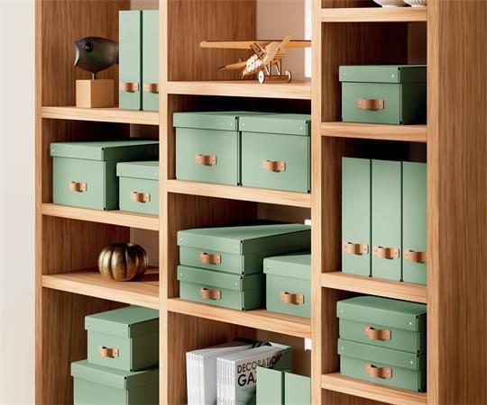 Udržujte pořádek a užívejte si pohodlí s kartonovými boxy Leitz Puro s víkem, které nabízejí okamžité a praktické řešení pro ukládání Vašich věcí. Elegantní kožené poutko dodává boxu prémiový vzhled a zajišťuje pohodlnou manipulaci při vyjímání z polic i skříní.