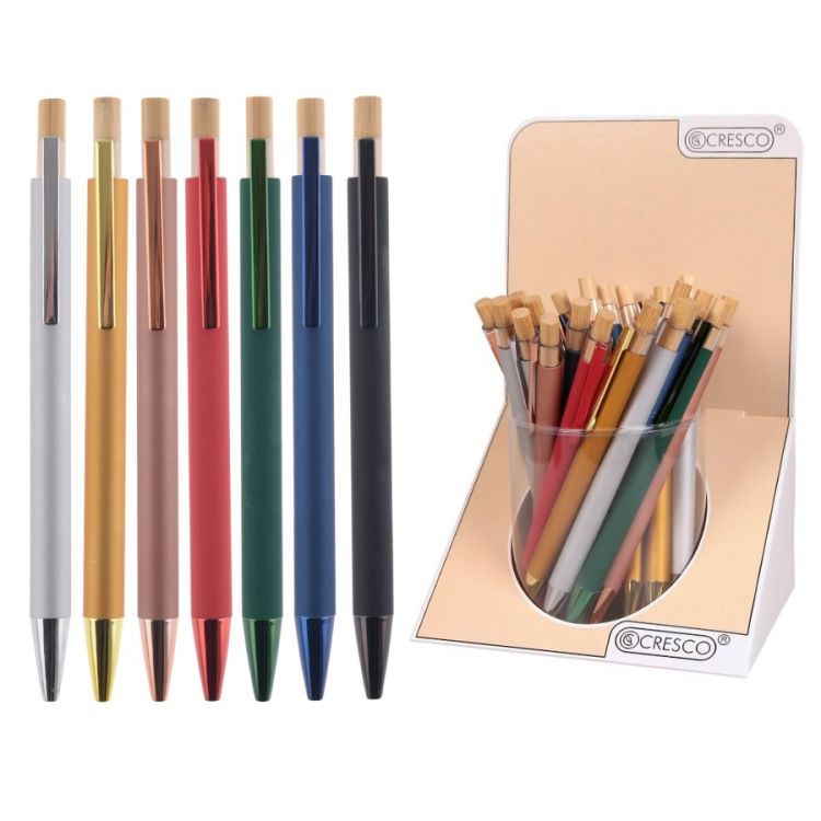 Kuličkové pero s tělem příjemného na dotek v matné barvě a lesklými chromovanými doplňky stejné barvy.