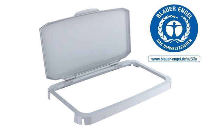 Výklopné víko pro odpadkový koš DURABIN s objemem 60 litrů. Praktické zacvakávací uchycení k hornímu okraji nádoby zajišťuje snadné nasazení i sejmutí.