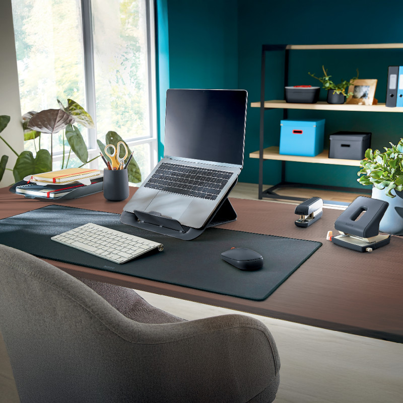 "Vytvořte si příjemný a funkční prostor s extra velkou herní podložkou pod myš Leitz. Jedná se o stylovou ochrannou podložku na stůl s pohodlným měkkým povrchem pro delší práci a hraní her. Jeho mimořádně velká plocha o rozměrech 100 x 40 cm poskytuje prostor pro klávesnici a myš, poznámkový blok a příslušenství.