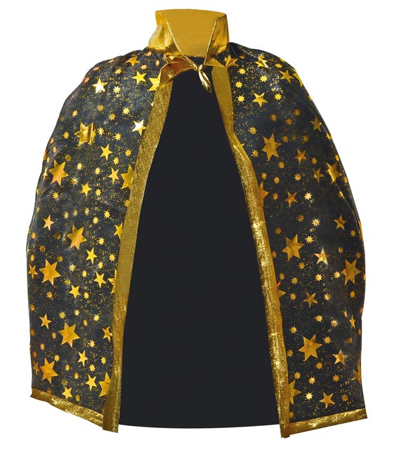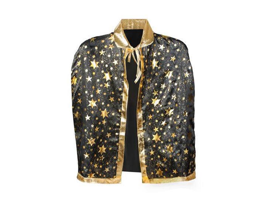 Popis k výrobku: Plášť čarodějnický černozlatý - 60 x 75 cm Čarodějnický plášť se zlatými hvězdami, vhodný ke kostýmu černokněžníka nebo kouzelníka, černozlatá kombinace pro výrazný efekt, lehká látka se zavazováním na šňůrky, délka 60 cm, celkový rozměr 60 × 75 cm.