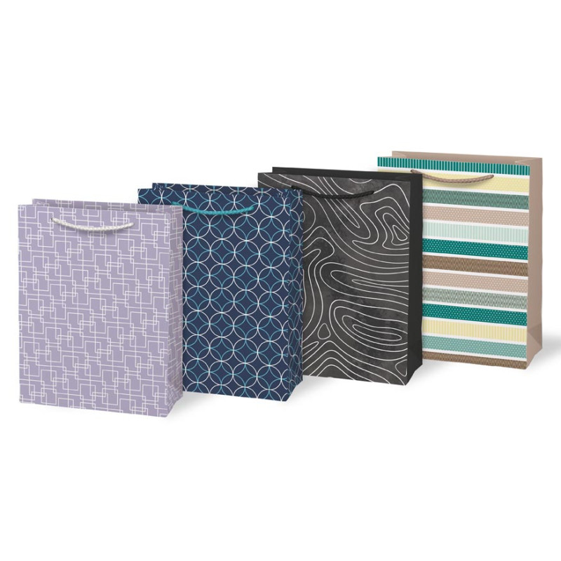 Taška dárková papírová - mix geometrické vzory / 19 x 25 x 9 cm