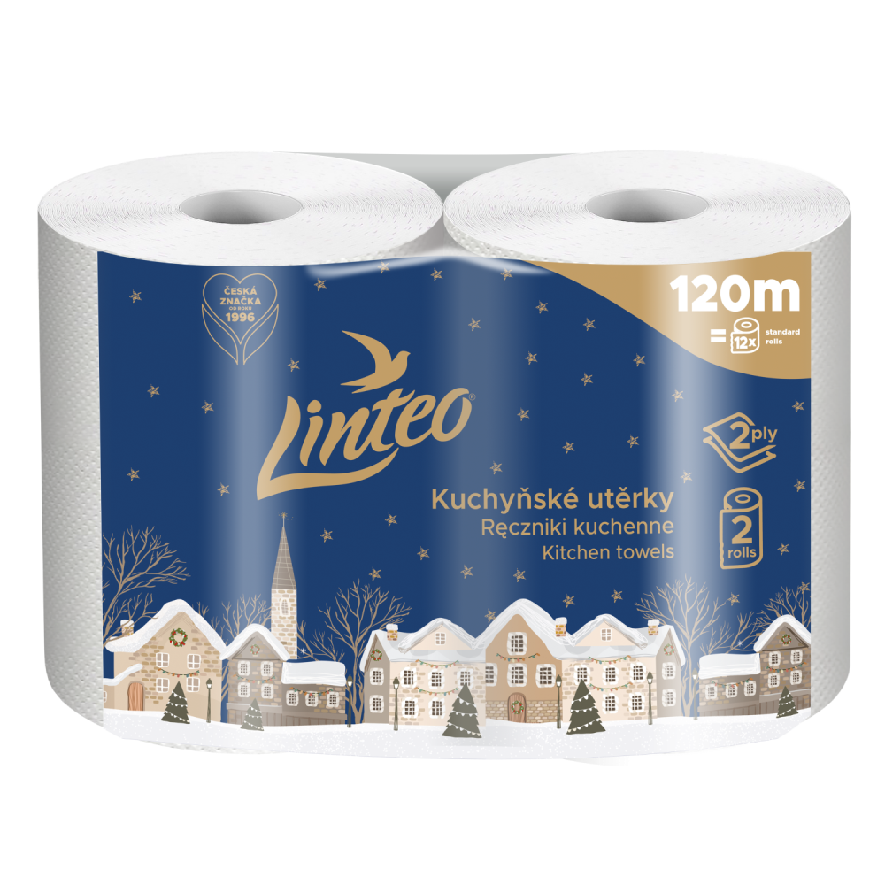 Dvojvrstvové kuchynské utierky Linteo s jemným sviatočným motívom kombinujú praktickosť a sviatočnú eleganciu.