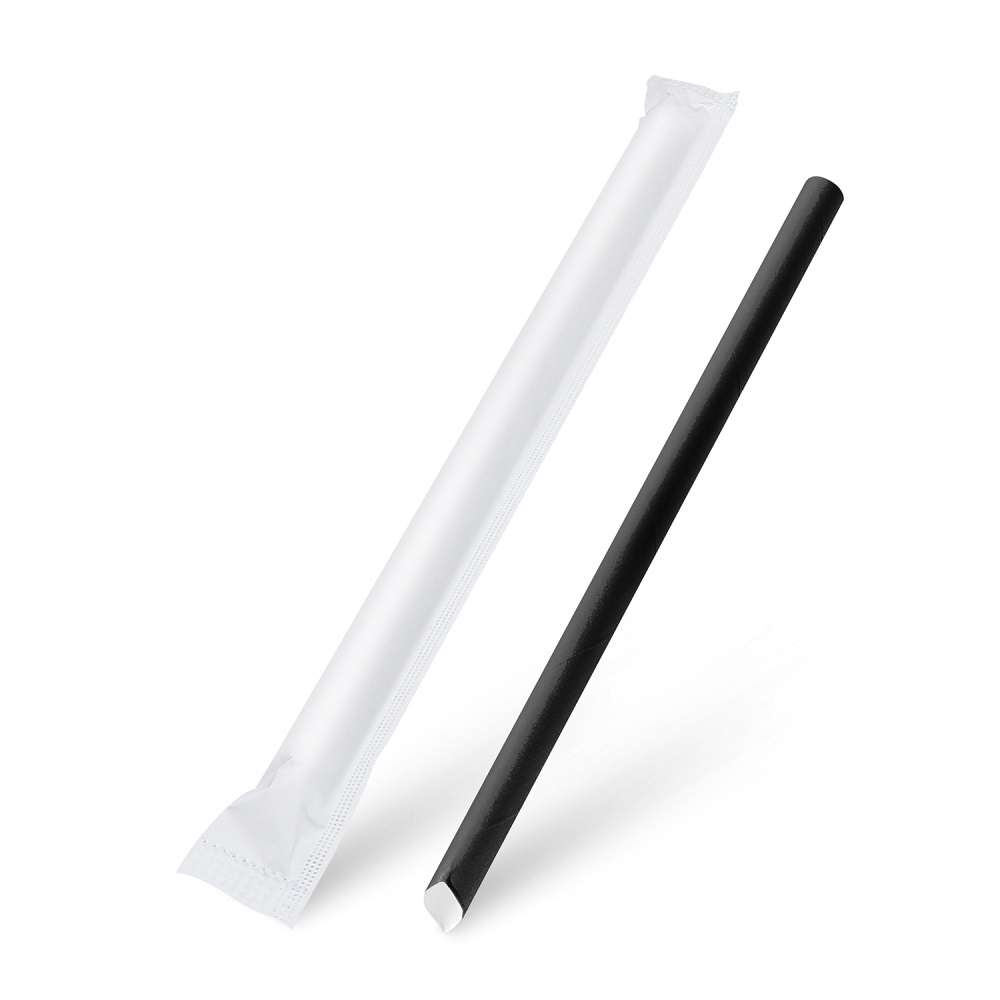 Slámka papírová Bubble Tea černá O12mm x 21cm jednotlivě balená [100 ks]