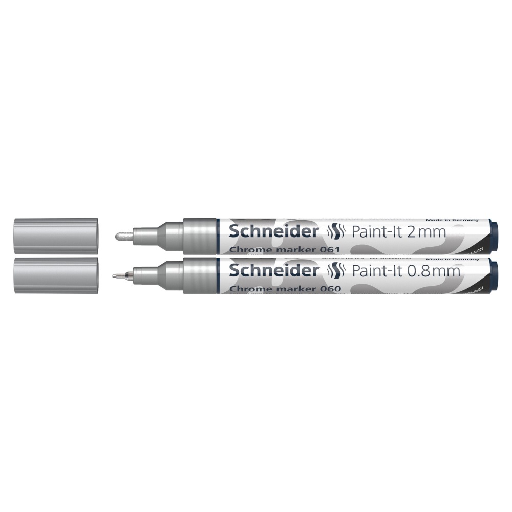 Popisovač Schneider Paint-It 060 Chrome Metallic, hrot 0,8 a 2 mm - stříbrný (sada 2 ks)