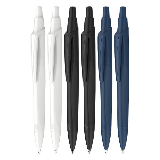 Prvé guľočkové pero na svete ocenené prestížnou ekologickou značkou Blue Angel dynamický dizajn s elegantným matným povrchom ekologické pero vyrobené z 92% z recyklovaných plastov vymeniteľná náplň M s dokumentačným atramentom Výhodný box 6 ks pier farba: Mix - 2x biela, 2x modrá, 2x čierna farba náplne: modrá pero obsahuje ekologickú náplň Eco 725 M, vyrobenú z 95 % z recyklovaných plastov doporučené náplne na výmenu: Eco 725 M, Eco 725 F, Express 775 F, Express 775 M, Office 765 M, Express 735 F, Express 735 M, Express 735 B, Slider 755 M, Slider 755 XB, Slider 710 XB