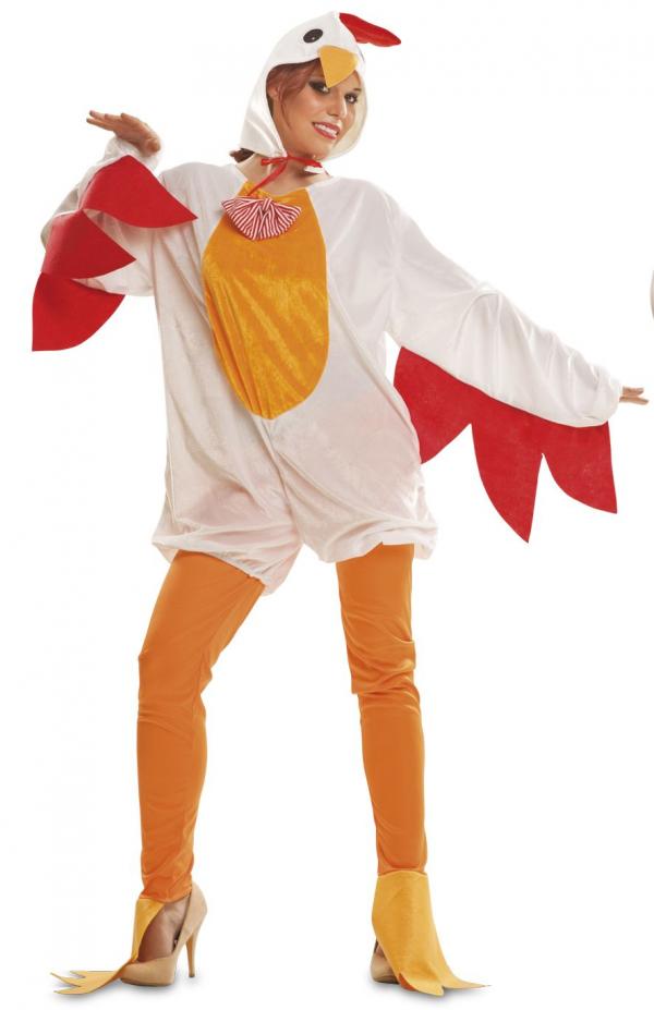 Součástí kostýmu je kapuce, overal a kalhoty s návleky na nohy. Bílý overal s dlouhými rukávy má na hrudníku velký žlutý sametový ovál s bíločervenou mašlí pod krkem. Na rukávech jsou přišity cípaté červené pruhy imitující křídla. Overal má krátké kalhoty stažené do gumy. V zadí části overalu je přišit červený ocas. Ke kostýmu dále patří oranžové úzké kalhoty, které mají u kotníků přišity žluté pruhy látky tvořící dojem drůbežích nohou. Čepice je na suchý zip a má žlutý zobák, červený hřebínek a bíločerné oči.