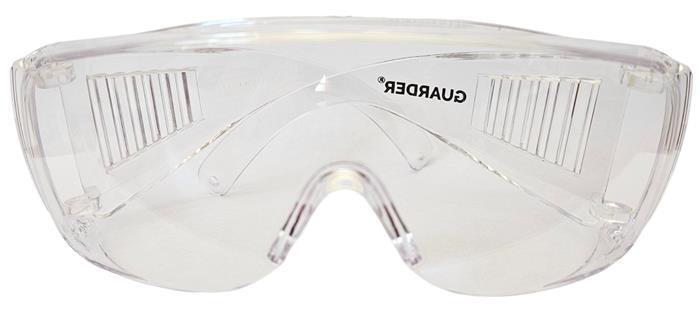Polykarbonátové ochranné brýle s UV ochranou a čirými skly. Lze je nosit i přes dioptrické brýle.