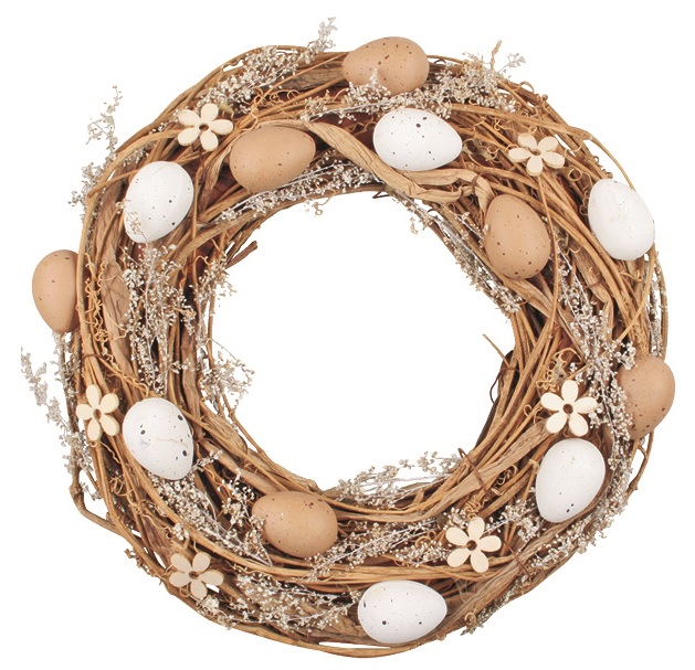 Velikonoční věnec 29 x 29 x 8 cm, hnědo-bílý