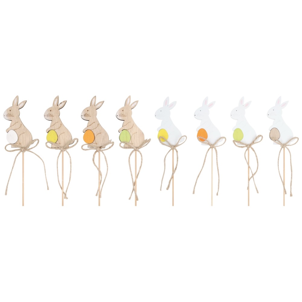 Dřevěný zajíc 4 x 7,5 x 0,5 cm + špejle (mix /cena 1ks)