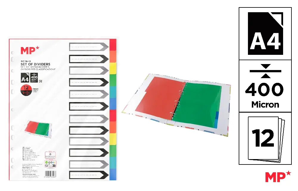 Rozřaďovač A4 PP 12 listů 400 mikronů