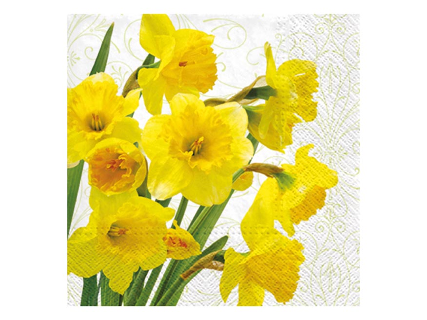 Žluté narcisky patří k prvním květům, které symbolizují příchod jara, a přesně tuto náladu přenášejí i do prostírání. Květinový motiv rozjasní stůl a přinese lehkost, která zpříjemní každé společné posezení. Na velikonočním ubrousku vytváří květinový vzor příjemné pozadí pro sváteční chvíle i běžné používání. Třívrstvé zpracování přináší potřebnou pevnost a savost. Motiv: narcisy Rozměr: 33 × 33 cm POČET UBROUSKŮ V BALENÍ: 20 ks Uvedená cena je za 1 balení (20 kusů).