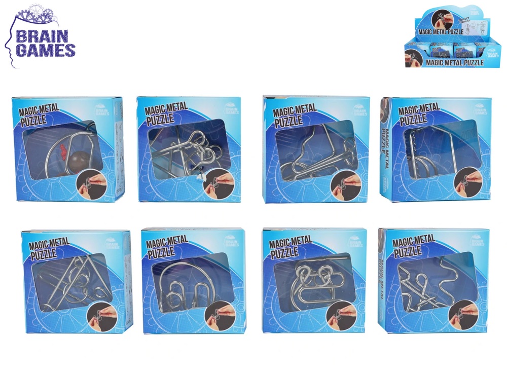 Brain games hlavolam kovový 8druhů v krabičce 24ks v DBX