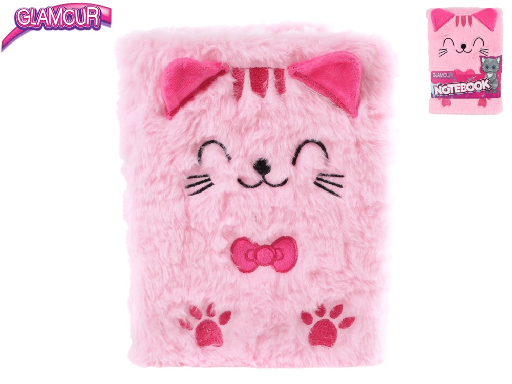 Glamour zápisník kočka plyšový 15,5x2,5x21,5cm 80stran 12ks v DBX