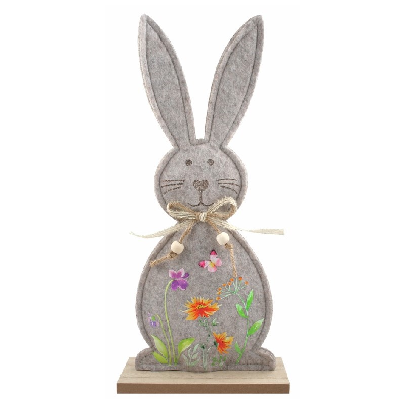 Zajíc s motivem louky z filcu 14 x 30 x 5 cm k postavení