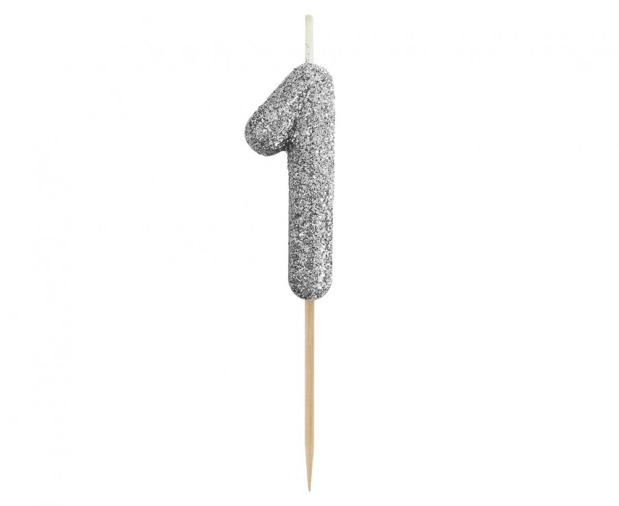 Dortová svíčka B&C - číslo "1" glitter černá 11 cm
