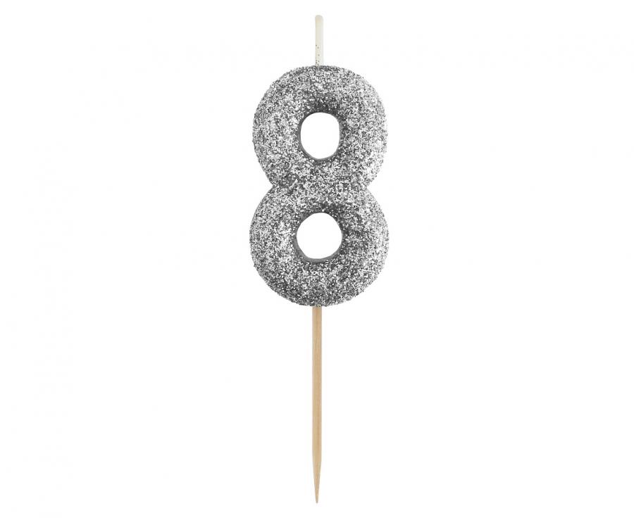Dortová svíčka B&C - číslo "8" glitter černá 11 cm