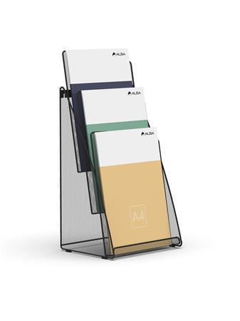 Popis k výrobku: Držák na katalogy, černá, stolní, A4, na výšku, 3 oddíly, drátěný, ALBA MESHPREZA4 N