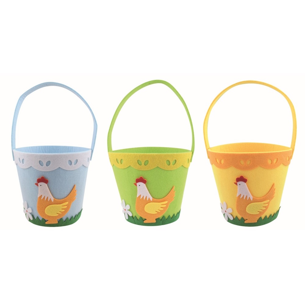 Košík z filcu s dekorem Slepice 17 x 15 x 17 cm + poutko (mix /cena 1ks)