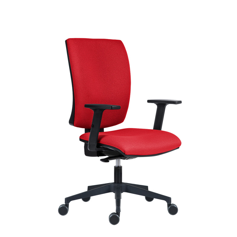 Popis k výrobku: Kancelářská židle Sinko židle s čalouněným sedákem a opěrákem, výškové nastavení opěráku mechanismem up-down, jednopákový synchronní mechanismus SYN-K se čtyřnásobnou aretací a automatickým nastavením síly protiváhy, volitelné područky, nylonová černá báze, kolečka Ø 60 mm univerzálně použitelná pro všechny povrchy, nosnost 150 kg, český výrobek, záruka 36 měsíců