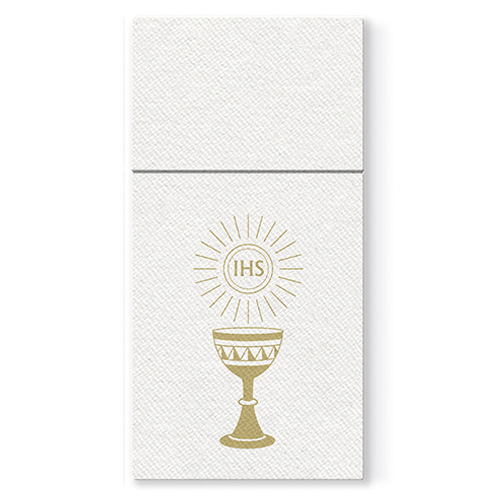 Kapsy na příbory PAW Airlaid 40x40cm My First Communion Gold, 25 ks/bal