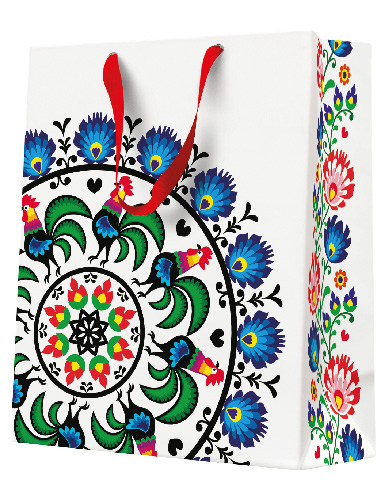 Papírová taška PAW střední Rooster Circle Folk ,balení 5 ks