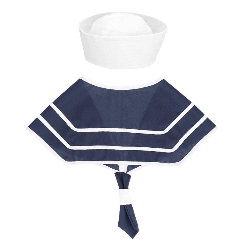 Set Navy (čepice, límec)Tato pěkná námořnická souprava pro muže a ženy obsahuje vše, co potřebujete, abyste se během karnevalu nebo maškarního večírku oblékli do drsného námořníka. Zábavný námořnický set obsahuje klasickou námořnickou čepici s odpovídajícím límcem. Zvedněte tedy plachty a odplujte do noci plné zábavy! Materiál: 100% polyester Obvod čepičky: 57cm Délka kravaty: 20 cm