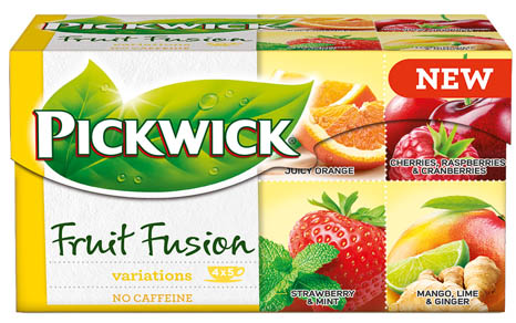 Popis k výrobku: Čaj Pickwick ovocný - variace s pomerančem tu pravou ovocnou chuť si vychutnejte ve variacích doplněných pomerančem, obsahuje: šťavnatý pomeranč, třešně s malinami a brusinkami, jahody s mátou, mango se zázvorem a limetkou, balení obsahuje 20 sáčků čaje