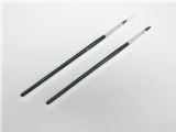 Plochý štětec určený pro umělecké účely. Plochý umělecký štětec, velikost č. 4, vlas kolínský určen pro vodové barvy. Na vlasech štětce je plastová krytka, jako chránítko před roztřepením vlasů. Dřevěné držadlo je ve vínově červeném provedení, na konci štětce máčení v odstínu toulce. Dřík dřevěný, toulec mosazný – odstín zlatý, bezešvý, vlas „kolínský – lasice“. Celková délka štětce: 187 mm, délka vlasu: 12 mm, šířka vlasu: 9 mm.