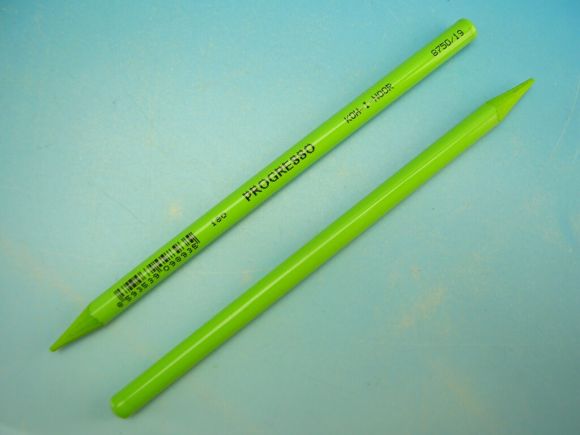 Souprava 12 ks pastelových tužek jedné barvy v laku (PROGRESSO). Jsou bez dřevěného pláště a celý průřez je tvořen pastelovým jádrem. Pastelky se velice dobře hrotí a jsou určeny pro školní, hobby i umělecké kreslení. Vzhledem k svému průřezu jsou vhodné především pro vybarvování velkých ploch.