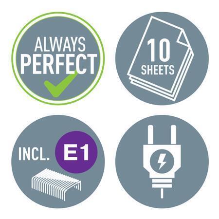 Vhodné pro časté používání. Elektrické sešívání je snadné, rychlé a spolehlivé. Stačí pouze vložit papíry a zbytek práce za Vás udělá sešívačka sama. Kapacita sešívání do 10 listů (80 g/m2). Bez manuální síly - obsluha jen jednou rukou. Spolehlivý výkon díky napájení z elektrické sítě, které zajišťuje nepřetržitý provoz. Adaptér je součástí balení. Používání elektrických drátků Leitz e1 garantuje bezproblémové sešití. 3 roky záruka a GS certifikace (při použití drátků Leitz). . . . . .