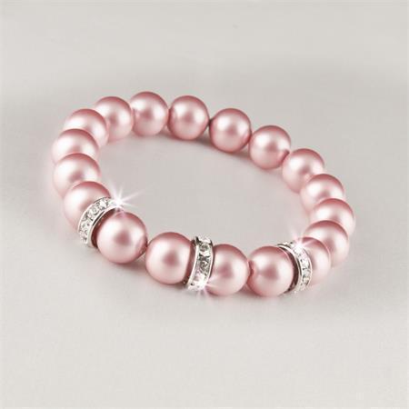 Modní perlový náramek v růžové barvě a 3 rondely s krystaly Swarovski.